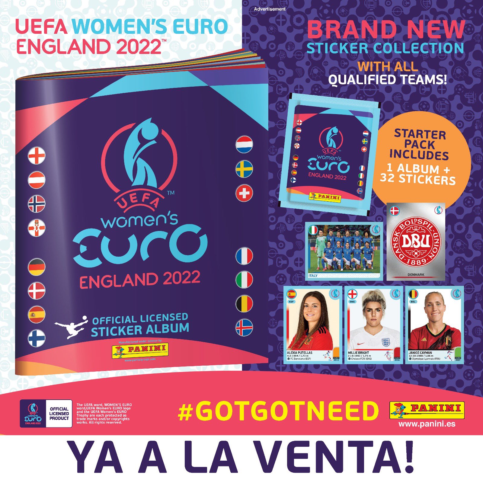 Con motivo de la Eurocopa de fútbol femenino, que se disputará en Inglaterra este año, Panini saca esta nueva colección. Estaba previsto que saliese antes, pero con la descalificación de Rusia por lo que todos ya sabemos, Panini tuvo que eliminar las páginas correspondientes a la selección rusa.