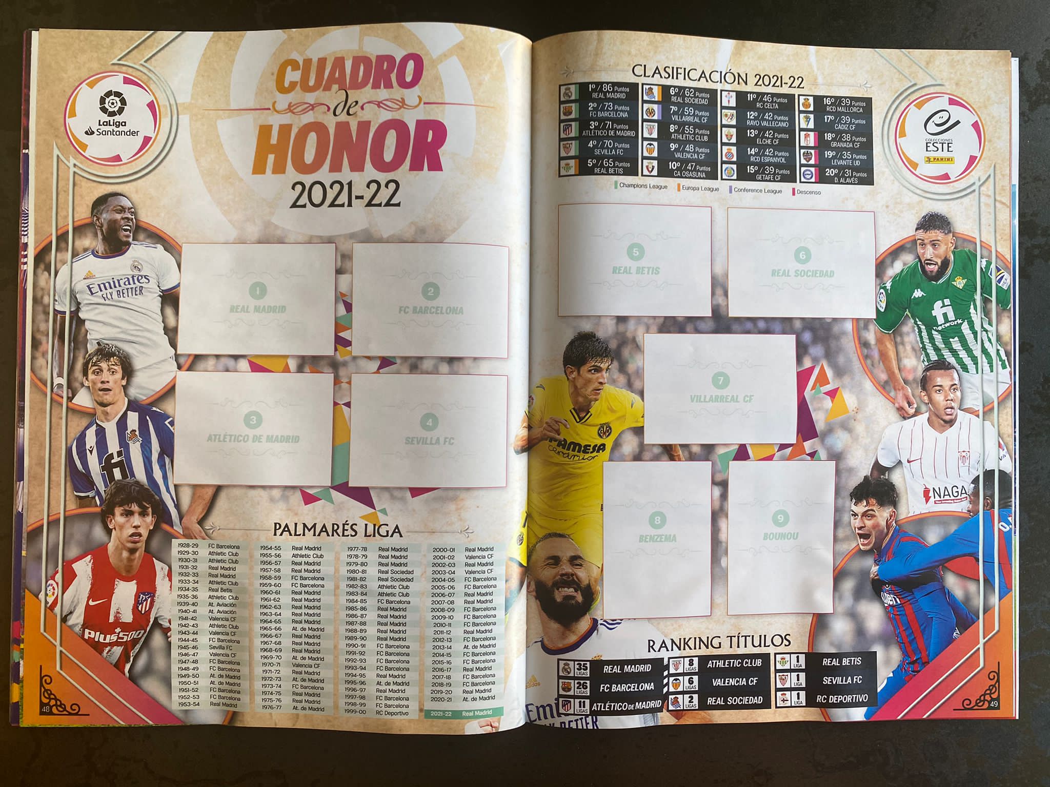 Sección con los 7 primeros clasificados de la temporada 2021-22 - los que jugarán competiciones europeas, además del Pichichi y el Zamora de la pasada campaña. Me parece muy buena idea esta sección, a lo mejor podrían añadir también un cromo del Zarra, pero aun así me gusta mucho.