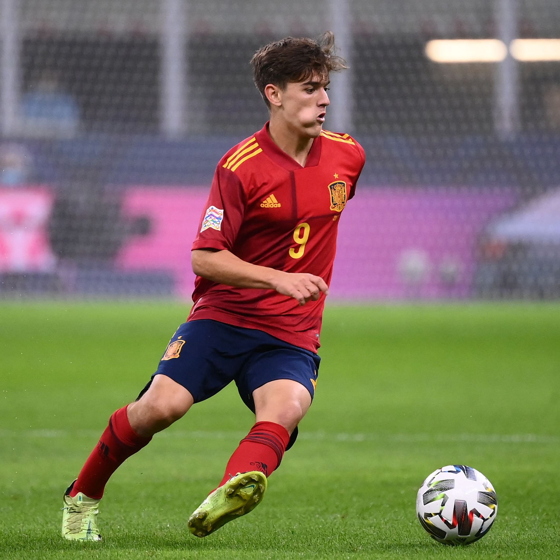 El 30 se septiembre de 2021 fue convocado con la selección española. Esta decisión de Luis Enrique levantó mucha polémica, pero el jugador respondió con mucha garra y mucho sacrificio en su debut con la selección el 6 de octubre ante Italia, en las semifinales de la UEFA Nations League. Tras este partido, el futbolista italiano Emerson Palmieri, dijo del joven jugador español que es un futbolista "con un enorme potencial".
